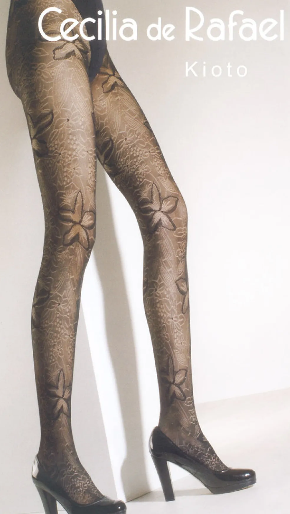 A Very Flattering And Refined Styled Fashion Tight Made From Luxurious Microfibre. Delicate Floral Design To The Waist, Flat Seams, Gusset, Sheer Toes.