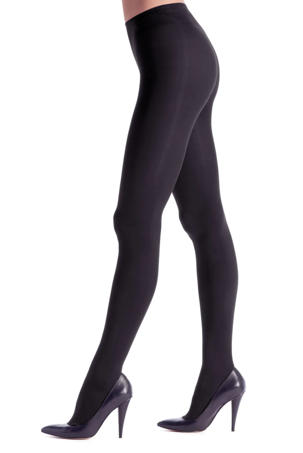 Opaque Tights In Soft Microfibre Yarn Using Progress 3Dimension Technology. The Even Knit Produces A Consistent Colouring And Coverage On Entire Leg With A Slight Sheen Undertone.