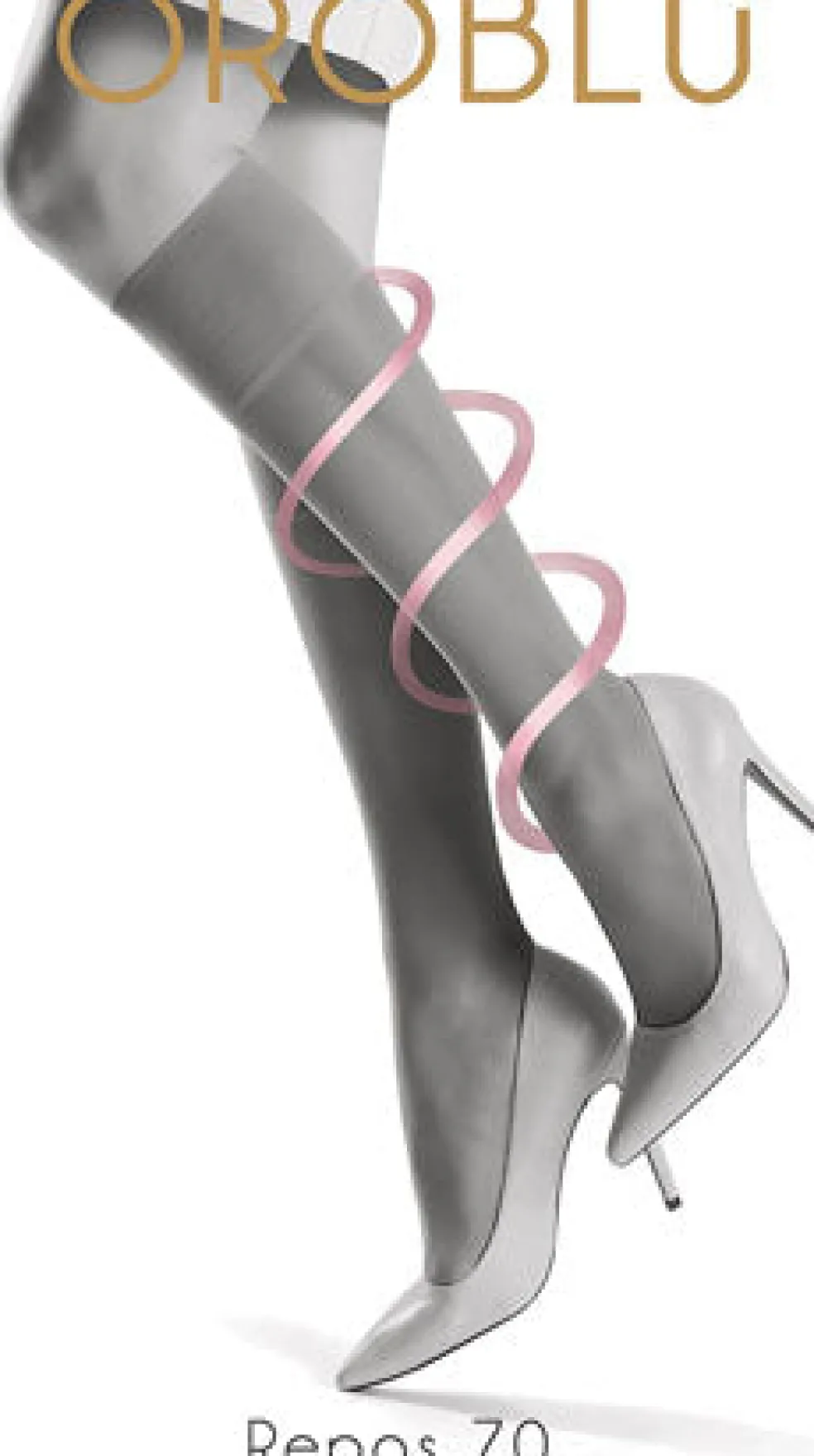 Oroblu’s Famous Repos 70 Gives Your Legs That Added Support To Your Legs During Long Long Days Standing, Sitting Or When You Just Want A Boost To Your Step. These 70 Denier Knee Highs Features Medium Compression At The Ankle And Gradually Reduces Up The Legs Giving Your Blood Better Circulation And A Feeling Of An All Day Massage.