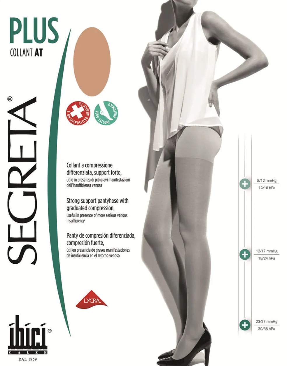The Plus Series Of Support Pantyhose Are Very Useful For The Presence Of More Serious Venous Insufficiencies. The Strong Rating Of 23/27Mmhg Provides Instant Relief For Those Suffering From Leg Cramps, Swelling, Pain Associated With Varicose Veins And Thrombosis. The Honeycomb Structure Of These Tights Have Been Knitted With Exacting Standards Using Many Criteria Measurements Along The Leg. Through These Measurements Was Verified Also The Correct Compression Level On The Ankle, Calf And Thigh.